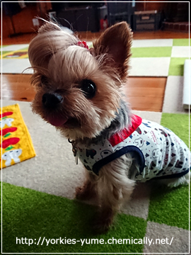 JUGEMテーマ:ヨークシャテリア 先日のお話。 大人ふたりでお話が盛り上がっていた時 後方から 「ぷ!ぷぷぷー。」って聞こえて ユメちゃんがチッコ中でした。(笑) 「ユメちゃんはここですよ」って おならで教えてくれたんですね。 ユメ先生、 ありがとうございます。(・∀・) その時はちゃんとトイレだったのに。 この画像、 ユメ先生の後ろのカーペットが 盛大にお洗濯中です。 リヨンちゃんちも 先日カーペットお洗...