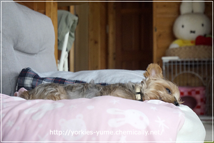 JUGEMテーマ:ヨークシャテリア ユメちゃん、 とっくに朝です。 おはようございます!(・∀・) きちんと 自分専用クッションで寝てて 偉いんだけどさ。 息苦しくないですか?(・∀・) 昨夜は雨音でブルブル。 早朝はパパを緊張でお見送り。 お疲れですか〜?(笑)