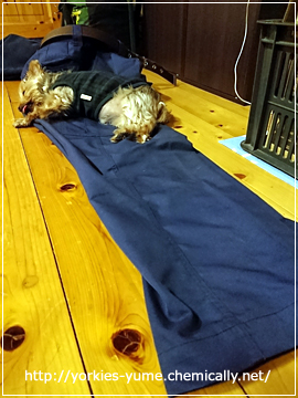 JUGEMテーマ:ヨークシャテリア 今日もマイブームのこちらで 食後のまったりタイムを楽しみます。 今夜のサブ目標は 「ズボンの幅におさまる」 ユメ先生、さすがですね!(・∀・)b ユメ:は!!!!! ユメ:今日のお顔はきっと大丈夫。 はい、大丈夫ですよ。 お顔半分つぶれてますけどね。 (・∀・)