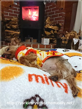 JUGEMテーマ:ヨークシャテリア ストーブでぽかぽかしすぎて この寝相、季節は夏って感じですね。(笑) ユメちゃん的ヘソ天の限界はここまで。 この後、ほんとに暑くなって 水を飲みに行くのがお決まり。(笑) 今朝は両足をそろえて お姉さん座り風。(・∀・) その後。 おケツがベッドに乗っていません。 いいのかい、それで。(笑) ユメ:いいんです、これで。 ぬくぬくストーブライフ、満喫中〜♪ (・∀・)♪...