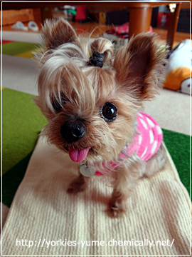 JUGEMテーマ:ヨークシャテリア ユメ:おニューなヘアですよ。 ちょんちょりんこがずいぶん伸びてきて おだんごにしてもニョキッと垂れてきます。 今日はまた新しい形になりました。(・∀・) そして今日は寝相も。(笑) 右の前足、足裏が背中側に向いています。 痛くないのかい? 肩が外れそうでこわいー。(・∀・)