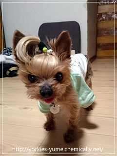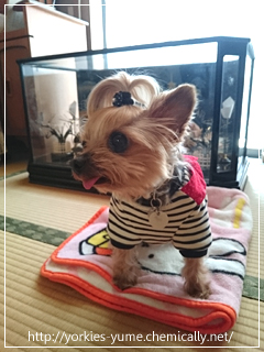 JUGEMテーマ:ヨークシャテリア 夜ご飯を食べた後。 いつも自由きままに あっちのベッド、こっちのベッドと 渡り歩いていますが、途中で気付いた! 前足の後ろに袖!(笑) 襟が伸びる〜! 早急にレスキューお願いします。(笑)