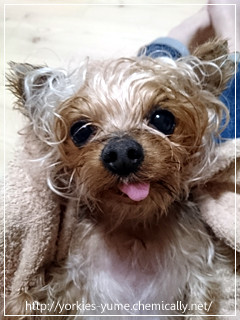 JUGEMテーマ:ヨークシャテリア ユメ:シャンプーされちゃいました。 シャンプーすると ちょんちょりんこの部分がくるくる〜♪ ユメ:ママも最近パーマかけたけど そんなにくるくるしたいのかな。 ユメ:どうだ! ちょんちょりんこが乾いてくると このワンちゃん誰?疑惑だね〜。(笑) ドライヤーをかけてるうちに ちょんちょりんこの下はムッツリ顔になってきますが ユメちゃんのイメージ尊守のため 「...