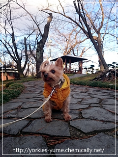 JUGEMテーマ:ヨークシャテリア ユメ:いっちに!いっちに! ユメ:こちら、千秋公園の御隅櫓でございます。 ユメ:こちらは佐竹義堯公銅像でございます。 今日初めてご挨拶したよ。 今日はぽかぽか暖かかったです。 おサンポ気持ちよかった〜! ユメ:少しだけ残ってる雪の上に落とされました。 わざわざ。(笑) 今日のお洋服は誕プレのコート。 チップとデールだよ。 マフラー付き。(・&fora...