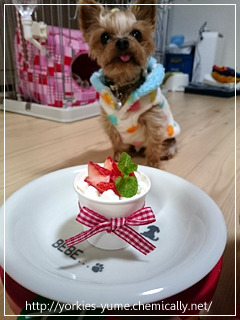 JUGEMテーマ:ヨークシャテリア ユメちゃん、お誕生日おめでとう〜♪ ケーキとお洋服でお祝いです。(・∀・) ユメちゃんは早くからイチゴにロックオンです。 準備中からうろうろ、そわそわしてたもんね。(笑) ユメ:いっただきまーす♪ 甘さ控えめの蒸しパンに 水切りヨーグルトとイチゴで バースディケーキ風。 ユメ:むむむ。。。 ユメ:なんか口の中でひっかかる! ユ...