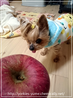 JUGEMテーマ:ヨークシャテリア ユメちゃん! トトちゃんちからのリンゴ食べよう! まだ警戒してる?(笑) ユメ:すんすん。 ユメ:食べる♪ おっきく切ってきたよ。 三角すいかみたいに豪快にいこう〜。 ユメ:蜜入ってるね!んま! すんごい速さで。 ふたくちくらいで食べました。(笑) トト母さん、超おいしかったです! ありがとう。(・∀・) そしてぴょんさんからいた...