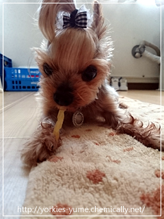 JUGEMテーマ:ヨークシャテリア いつものおやつの時間。 ふと気付くとぴろぴろぴーが改変されていた。 いつの間にか片手でできるようになっていた。(笑) いや、片足か。(・∀・) と、思ったのもつかの間・・・。 やっぱりいつものスタイルに♪ ユメ:いつだって! ユメ:いっしょうけんめい! ああ、よかった、よかった。(・∀・)