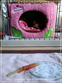 JUGEMテーマ:ヨークシャテリア 足のおできを手術してから ユメちゃんのエリカラ生活は続いていました。 慣れないエリカラを付けて お部屋でひとり(一匹?一頭?) お留守番してもらうのはちょっと心配だったので しーさんがお仕事で出掛けるときは しーさんの両親(じーやんとばーやん)のお部屋で 一緒に過ごしてもらっていました。 足の傷もだいぶよくなり エリカラを付けていなくても ユメちゃんは全然足を気にしなくなり お留守番の心配もなくなってきたかな〜と思うので 今日でじーやん・ばーやんとのお留守番...