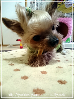 JUGEMテーマ:ヨークシャテリア ユメちゃーん。 焼けたよ、味見する? またまた〜。 後ずさりしないでさ〜。(・∀・) ユメ:いただきまっす! でか! おくちでか! 下の前歯がないの丸見えだよ。(笑) ユメ:明日はバレンタインだもんね〜。 味見オッケー♪準備オッケー♪ 明日は久しぶりにお出掛けです。 お天気悪くなりませんように〜。