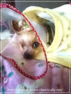 JUGEMテーマ:ヨークシャテリア 昨夜遅く、ユメちゃんの手術は無事終了しました。 午後から手術までは飲食禁止ということで ぴろぴろぴーのガムも夜ご飯も食べれないので 時間をつぶすために14時ころから あてもなくずっとドライブしてました。(笑) 病院の診察が終わってからの施術で 病院から連絡があって連れて行ったのは20時頃。 後ろ脚の「おでき」を取ってもらうことと 歯のクリーニングをお願いして しーさんは自宅待機となりました。 家でドキドキしながら待っていたら 22時半頃、やっと電話が来てお迎え...