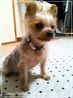 JUGEMテーマ:ヨークシャテリア耳が大きくみえるのが大好きなママ。耳の飾り毛が大分伸びてきました。耳が立ったベストショット。とってもかわいいお顔で撮れました。