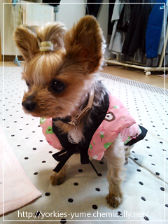 JUGEMテーマ:ヨークシャテリア おっ。このカラーリング!? ちらっ♪ ユメちゃんがミッフィーちゃん背負ってる〜。(笑) ミッフィーちゃんが犬服に登場したので 早速購入しました。 他にフリースのタンクトップや ダウン風ジャケットもあったよ。(・∀・)イイネ! ちょっとユメちゃんが警戒してたので 肝心のミッフィーちゃんを撮影できてない。(笑) しかもちょっとサイズがキツイ。。。 またうーたんに協力してもらって 来年あったかくなったら お揃いミッフィーちゃんでランランしようかな!(・&f...