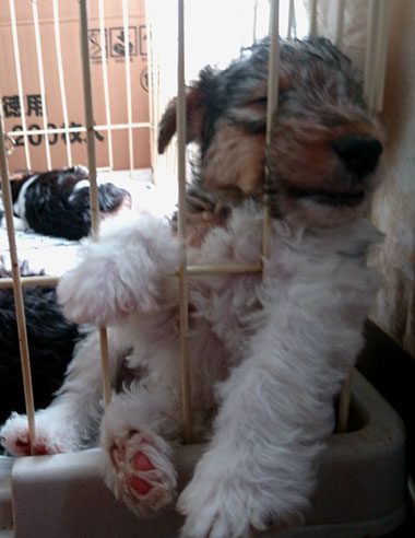 ワイヤーフォックステリアのナイト君が鎌倉市へ旅立って2週間が過ぎました。 夜泣きも無くなりトイレはシーツにできるようになったそうです。 運動神経が良くてケージからは脱走するは、階段で2階まで上がって来るそうですw JUGEMテーマ:ワイアーフォックステリア