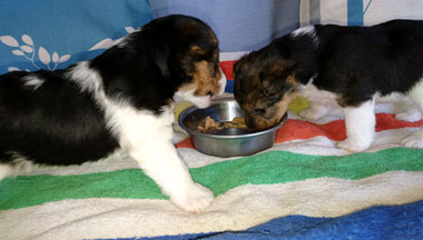 ワイヤーフォックステリアのトビアス君とチカプちゃんの離乳食が始まりました。 左 チカプちゃん 右 トビアス君 JUGEMテーマ:ワイアーフォックステリア