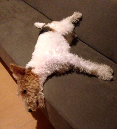 文京区のロスコ君が1歳半を過ぎすっかりワイアーフォックステリアになりました ひと遊びするとソファーへ そして・・・眠りに落ちます http://www.kerry-k.com/ JUGEMテーマ:ワイアーフォックステリア