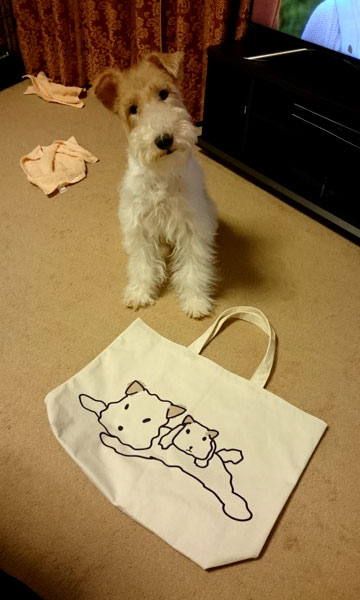 京都市へ行ったワイアーフォックステリアのシュガー君が旅立って半年過ぎました。 甘えん坊で寂しがりのシュガー君です。 ワイフォのトートバッグと お休み中 JUGEMテーマ:ワイアーフォックステリア