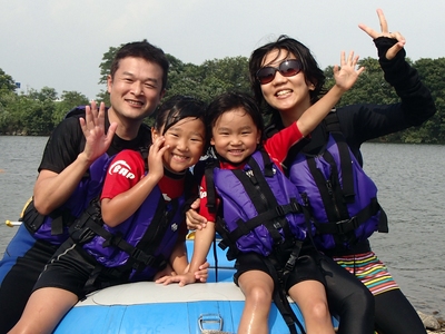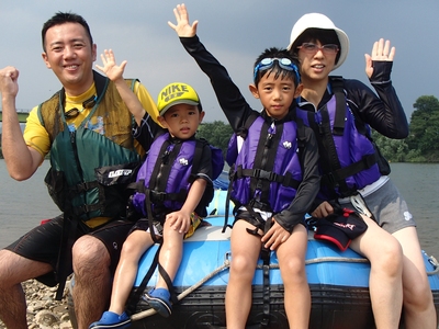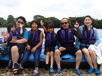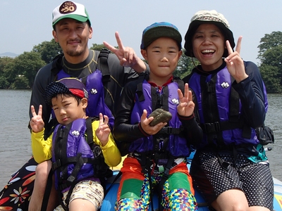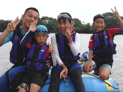今回で3回目のリピーターご家族様が参加。有難うございます。天気が心配でしたが、雨にも降られず思い切り飛び込んだりして高梁川を遊びまくりました。去年は吉野川のファミリーラフティングにも参加されたとのこと。すっかり川遊びにハマッちゃってますねー。「パン食べたーい。」と始めからねだってくる弟君。よっぽど気に入ってくれてるんだね。お姉ちゃんは運動神経抜群。今シーズン最高の水上トランポリン連続ジャンプ130回をマーク。本当にすばらしい跳びっぷりでした。子供達の運動神経の良さはお父さん譲りですね。今回もしっ...