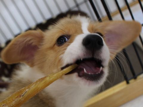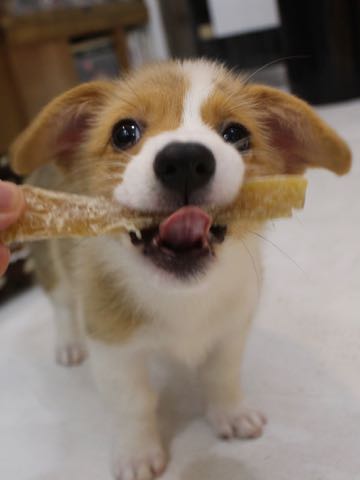 《 鹿すじ 》をくわえるコーギーちゃん ブサイクな顔になってます(笑) 《 ウェルシュ・コーギー・ペンブローク 》 お誕生日:2018年7月4日 性別 :おんなのこ カラー:レッド & ホワイト 特徴:しっぽつき(※)、垂れ耳(現時点) ウェルシュ・コーギー・ペンブローのこいぬを家族として迎えたいとお想いの方からのご連絡を心よりお待ちしております。 フントヒュッテ Tel:03-6380-7820 OFFICIAL SITE:hundehutte.net