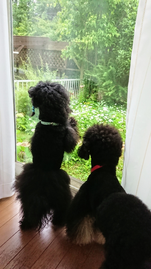 JUGEMテーマ:トイプードル 花ちゃんのサロンが開店して、はや数日。 看板犬のお2人さんは、やる気満々。 相当、看板犬稼業が楽しいらしい。 「エース、花ちゃん行っちゃったわよ。あたし達もいかなくっちゃ。」 「オレの花ちゃん、もう行っちゃった?」 徒歩10歩だからねー。 すぐに、迎えに来るよー。 それでも、心配なお2人さんは、窓から離れられない。 「シュシュちゃんなんてさー、寝てるだけなんだけどなー...