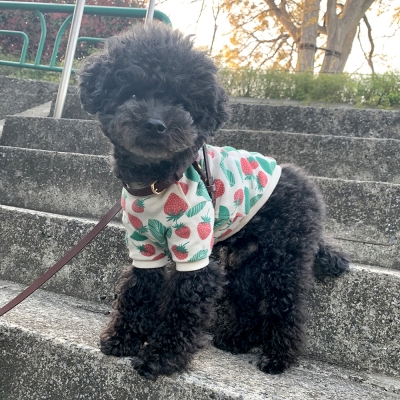 JUGEMテーマ:小型犬用グッズ紹介 JUGEMテーマ:トイプードル ブラボーは新しいハーネス ホイミは撮影でつけた首輪が可愛買ったので そのまま首輪を着用で 毎日お散歩行ってます! 洋服を着た上からハーネスをつけた写真を アップしなければと思ったまま受注最終日に突入します。 今更ですがブラウンカラーのハーネスとイチゴT 2本のハーネスのベルトはどちらも穴が6つほど あいているので裸んぼから冬服までベルトで調節すれば 大...