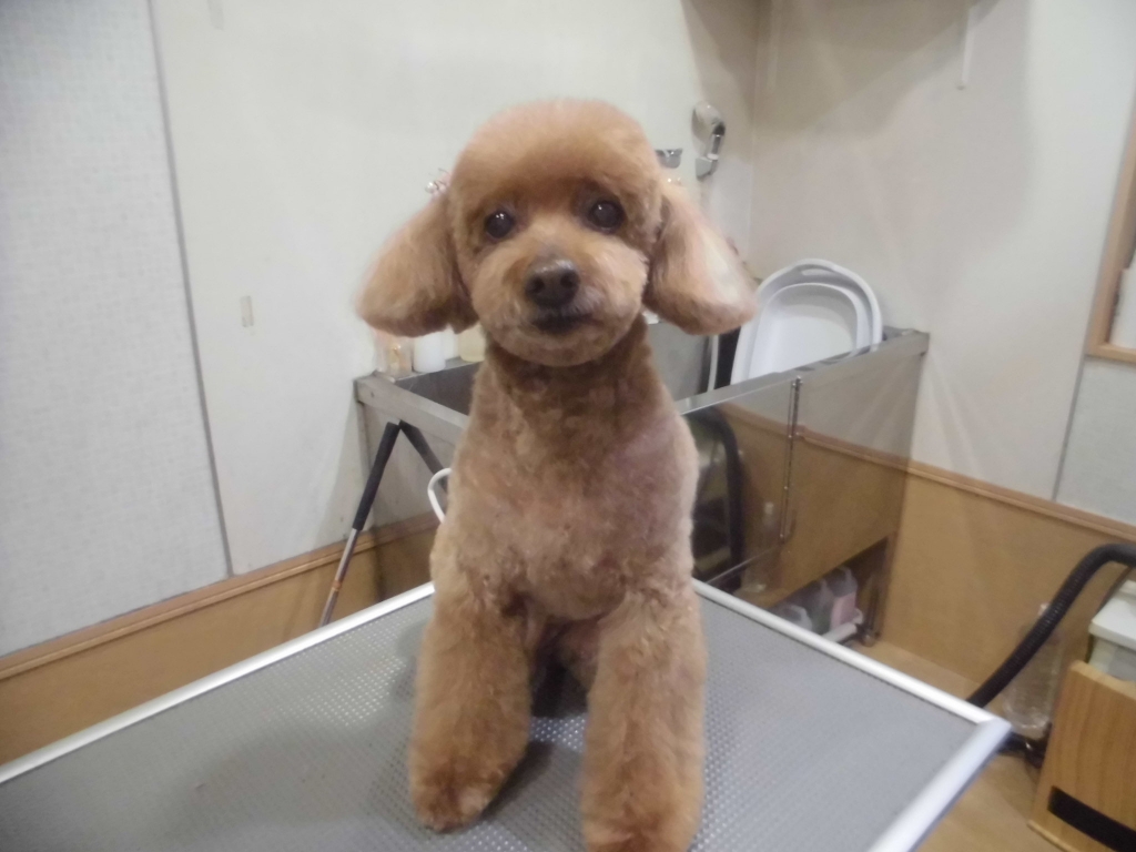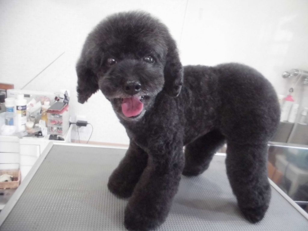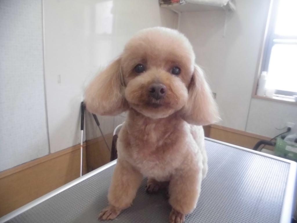 JUGEMテーマ:トイプードル ツルンと可愛い頭のチャッピーくん(#^^#) 春だから少し短めにカットして気持ちよくなったね! また、次回もお待ちしています。