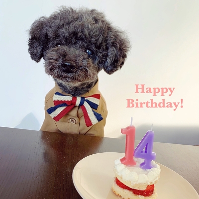 JUGEMテーマ:わんこ JUGEMテーマ:トイプードル 体調不良やなんやかんやで 久しぶりのブログとなりました。 そして突然のブラボーハッピーバースデーです! 14歳になりました! 今年のケーキは王道イチゴショートだよ こっちのプレゼントはそれほど嬉しくないと思うけど シンプルな無地のシャツと超ネクタイセット。 販売するときはベージュやブラウン色のワンちゃんのことを 考えて薄い茶色の服は避けがち...