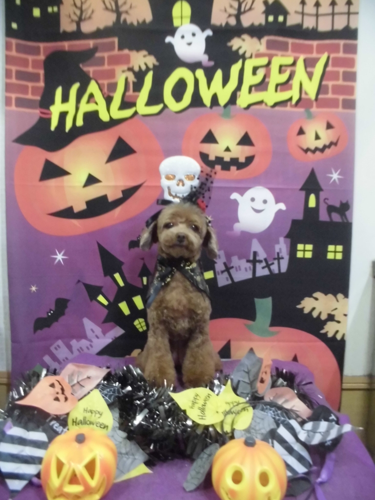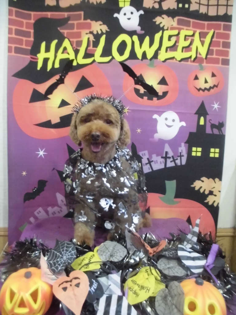 JUGEMテーマ:トイプードル スカルを乗せて、とってもかわいいハロウィン仮装のチョコちゃん💀 ハロウィンハットもバッチリ決まったね🎃 また、次回お待ちしています。