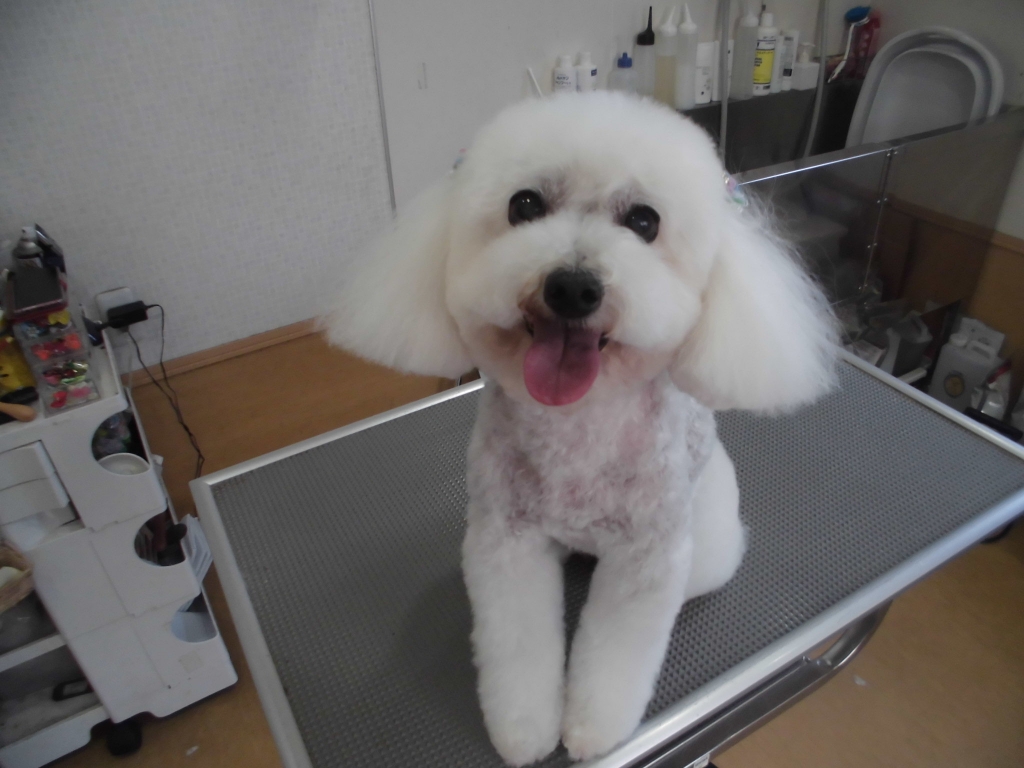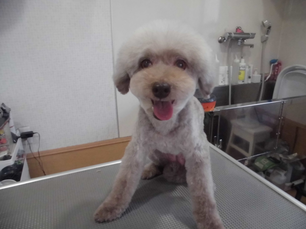 JUGEMテーマ:トイプードル キャンペーンのトリートメントシャンプーで、綺麗サッパリしたよ。 まん丸頭ちゃんで、カットもスッキリ、涼しくなったよ。 また、次回お待ちしています。
