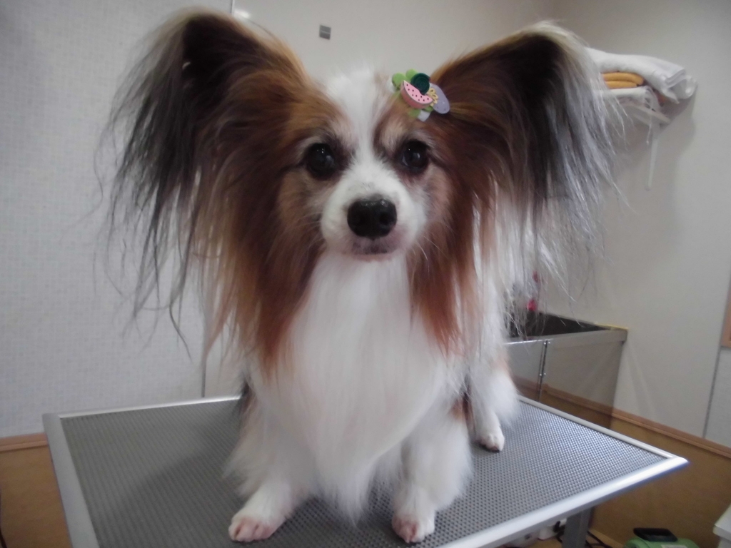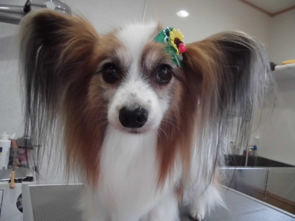 JUGEMテーマ:パピヨン レアくん。 今日もローズパックで、みんなきれいになりました。 サラリとした飾り毛が涼し気なレアくん。 ライちゃん。 ライちゃん、ベストショット。 耳も立って、この笑顔最高だね。 エマさん。 ひまわりのような笑顔のエマさん。 真っ白サラサラになりました。 レイくん。 お得意の笑顔のレイくん。 ブルーのひまわりリボンが、爽やかボーイだね。 ...