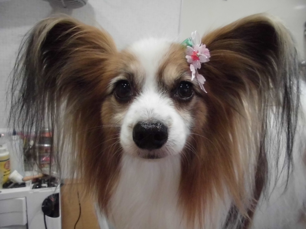JUGEMテーマ:パピヨン レアくん。 自慢の耳の飾り毛がサラリとキレイになりました。 今日も、凛々しいお顔がイケてるね。 ライちゃん。 お目目クリクリ&かわいい舌出しがとってもかわいすぎるライちゃん。 ゆめちゃんにギャン吠えする時の顔とは大違い。 エマさん。 桜リボンでさらにお上品に見えるエマさん。 ローズの香りで春気分だね。 レイくん。 トリミングが終わるとわかるとテンション...
