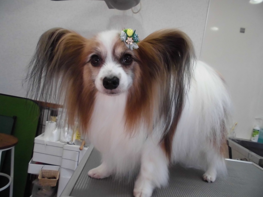 JUGEMテーマ:パピヨン レアくん。 今日は、キャンペーンのお気に入りのローズパックでみんな綺麗になりました。 まっ白になってピカピカレアくん。 ライちゃん。 フリフリレースのチューリップリボンで、とってもかわいいライちゃん。 お澄まし顔でぬいぐるみみたいだね。 エマさん。 毛量抜群で、抜け毛もスッキリ取れました。 今日は、赤いチューリップリボンでお洒落しちゃいました。 レイくん。 ...