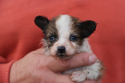 生後1ヶ月弱のパピヨン白茶の子犬オスです 父犬イギリス産JKCチャンピオンです (有)A HAPPY DOG LIFE JUGEMテーマ:パピヨン