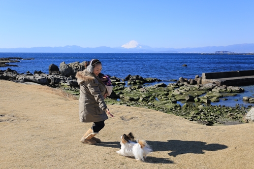 まだ先週末のお話ですが^^; 土曜日はまた母乳育児教室があって遠出ができなかったので、日曜日は海までぴゅーん!!! ちょっと風が強かったけど、そのおかげで、富士山がきれいに見えて感動でした☆