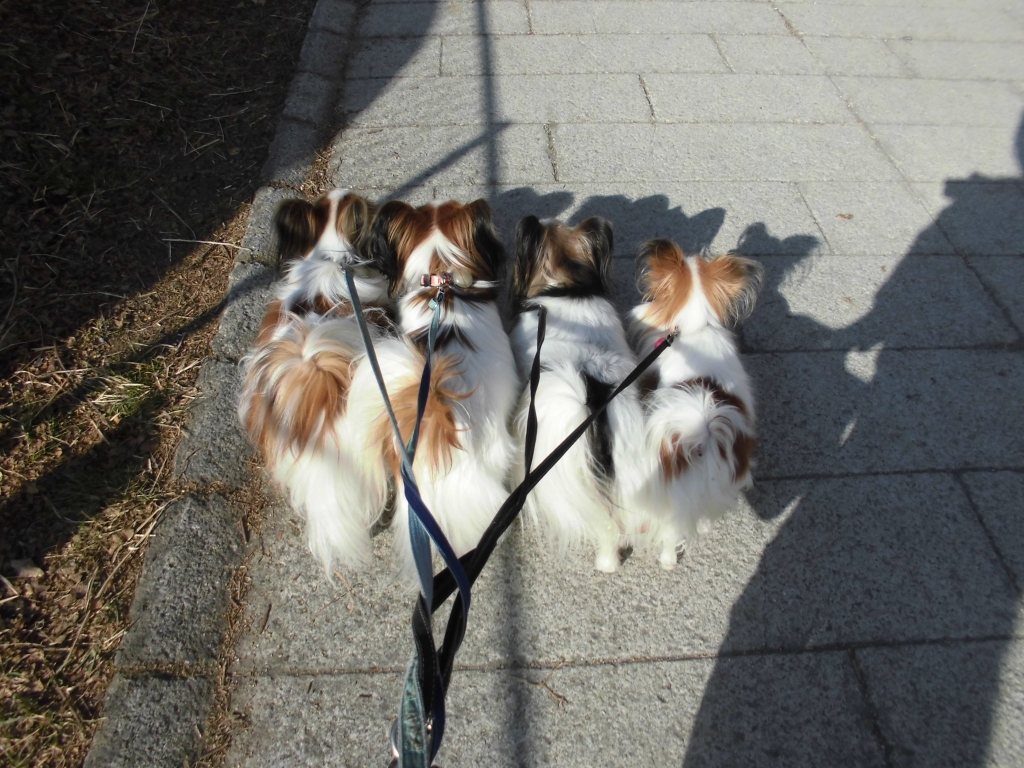 JUGEMテーマ:パピヨン 久しぶりのホテルだよー。 お散歩の4パピちゃんの後ろ姿が、かわいすぎる。 ご飯も隣りのご飯が気になり、取られるもんかとガツ食い。 みんなお揃いのベッドでそれぞれおやすみ中。 寂しん坊レアくんは、みんなと同じところにベッドを置いていも、部屋側のドア前で 寝るので、そこにベッド移動。やっぱり長男は甘えん坊だね。 お気に入りぬいぐるみで、エマさん大フィーバー。 レアくんは、トリミングのイリスちゃんとノリノリで遊んでました。エマさ...