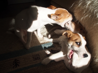 JUGEMテーマ:ジャックラッセルテリア 仲良しすぎて、ハードにじゃれあうパンダとヒメ ベッドの取り合い あしたも遊ぼうね! にほんブログ村 ジャック・ラッセル・テリア ブログランキングへ
