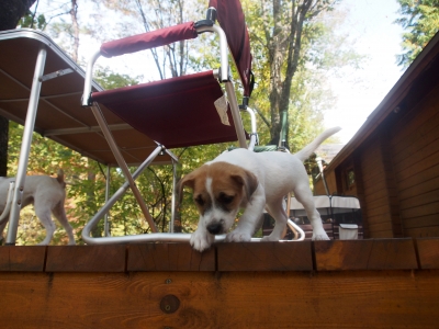 JUGEMテーマ:ジャックラッセルテリア 生後59日目 紅葉狩りを楽しみに中津川市に来ました。 朝夕は、けっこう寒く、風が吹くと落ち葉が舞い散ります。 でも、みんなで いっしょに紅葉が楽しめるのは、今回が最後なのです。 今日はパンダちゃん紅葉狩りです。 下に おりたいな〜 どこから降りようかなー ママに見つからないように 。。。(・・;) サササッ やっぱり、見つかちゃった! パンダ!危ないから勝手に行くんじゃないぞ! オレは川でも見てこー きれいだな〜、たそ...