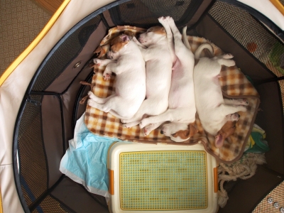 JUGEMテーマ:ジャックラッセルテリア 生後50日目 最近はサークルのジッパーの音に敏感で、ジッパーが少しでも開いてたり すると、すぐ脱走します。 パンダちゃん 「ネーネー!誰もいないわ!いまがチャンスよ!」 ヒメちゃん「パンちゃん見張っててよ!」 ムーミンくん 「ボクは もう一個の出口から出よう!」 テンテンくん 「みんな待って〜!!ボクも出るー」 パンダちゃん 「テンテン、もう みんな捕まって中にいるよ!」 いいね!と思ったらクリックorタップしてね! ...
