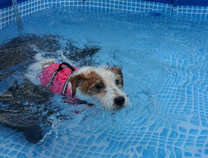 8月20日(火)昨日はお天気で、プール日和でした!シャンティさんのゴキゲンなプールに行ってきました。で、ダニーが浮いてます〜初プールなのでベスト着ています。見事なスイマーのおとぎちゃん、「ほれほれ〜こうやって遊ぶのよ〜お入りなさいな〜この階段が出入り口だからね!」ベストの取っ手持たれてひょい!ってプールに入れられたダニーは...何とかおとぎちゃんのまねっこが出来るようになったみたい。ちょ、ちょっと〜出入り口はどうなったの?代わりばんこにピョンピョン!ダイレクトに飛び込めるのはおとぎちゃんだけかな。でも...