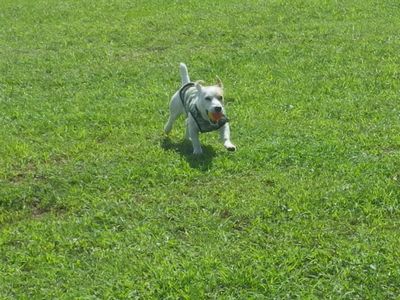 JUGEMテーマ:ジャックラッセルテリア珍しく、午前中のドッグランです。曇り空で道路の照り返しも少なく、どうにか歩いて来ることができました。約50分の道のりです。アチチでちょっと運動不足かな〜と思って。久々、ロング散歩ですよ。早朝におとーさんと散歩もしてきてるのにね。。。wwwぼ〜るぅ〜〜!!・・・どこまで元気なんだ?(笑)みんな、木陰でマッタリ過ごしてるというのに・・・なげて〜〜!ぼーるぅ〜〜〜!!ひとり、体育会系(笑)走ってはプール、遊んでは休みの繰り返しでした。今日はドッグランのお隣でボランティ...