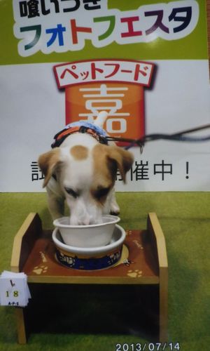 JUGEMテーマ:ジャックラッセルテリア先日行った、名古屋でのペット博でワンコのフード屋さんの試食をして撮っていただいた写真が今日届きました。ネットでダウンロードかと思ってたらわざわざ、プリントしたのを送ってくださいました。いい記念になります、ありがとうございます。うまうま〜〜♪試食中。。。まいう〜だった♪梅雨が戻ってきたかのような、雨です。高山も朝からずぅ〜〜っと雨です。今日はお散歩、出られません。すいか・・・。シャ〜〜クシャクシャクシャク・・・もっと、たびる〜〜!おしまい?いつものように、スイカ...