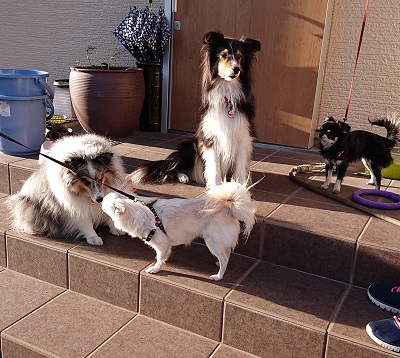 JUGEMテーマ:シェルティ 我が家は朝晩の二回、ワンコ散歩に出るのですが、冬の朝は途中で井戸端会議(笑) 同じような時間に出てきたワンコ友達と立ち話をして、気づいたらお昼前なんてことも(;^ω^) それに対して夕方の散歩は、日が暮れるのが早いのでご近所をくるりと一周。 途中にあるワンコ友達のお家に寄るのが日課みたいになってます。 姫ーズはそこでオヤツをもらうのを楽しみにしてて、それはお友達ワンコも一緒。 先日は、途中でお友達に会い、一緒に遊び...