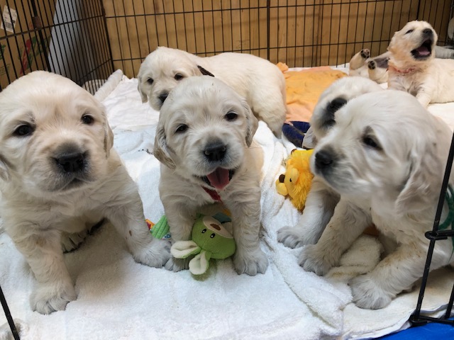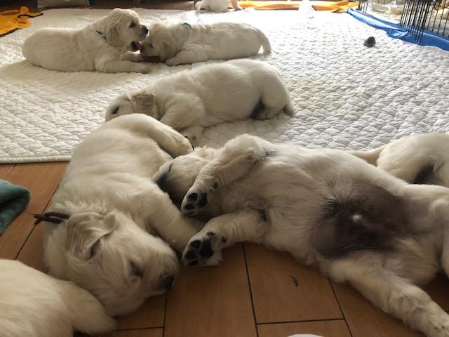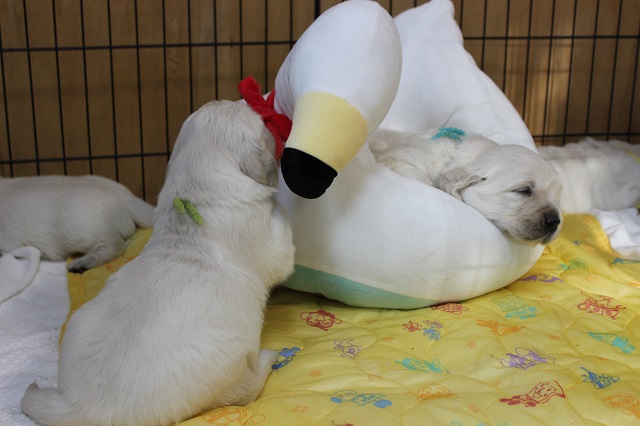 JUGEMテーマ:ゴールデンレトリバー しばらくブログ更新お休みします。 その間、下記を更新しますので、ご覧ください。 Facebook Instagram 子犬のお問い合わせは、Facebook Instagram メールにてお待ちしております。 電話は、留守電いれてくだされば、折り返ししますが、少々お時間いただく場合がありますので、ご了承くださいませ。 8日目のベビーたち。大きくなっています。 カレリアも新米ながら頑張っています...