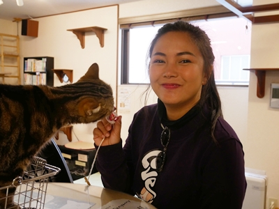 昨日の取材の模様を報告しま〜す ご来店頂いた方、 時間をずらして来て下さった方 ありがとうございました 取材で来て下さったのは フィリピンで活躍中の歌手 イェンコンスタンティーノさんです 映画やドラマの主題歌なども多く歌われていたり フィリピンでとっても有名な方 通訳さん曰く 日本で言う安室ちゃん的ポジションとのこと スゴ〜イ おやつでねこスタッフたちとスキンシップ中 めいちゃんも素敵なレディーの前で しっかり順番待ちするれでぃ...