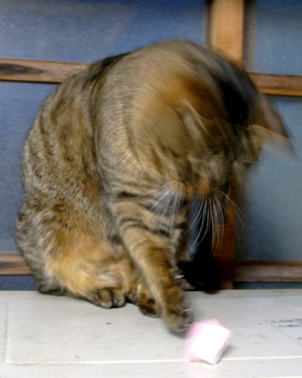 JUGEMテーマ:茶トラ猫 何をしているのかと思えば おやつのカマボコと戯れ中〜。 カマボコが転がってもおかしい年頃なのです。