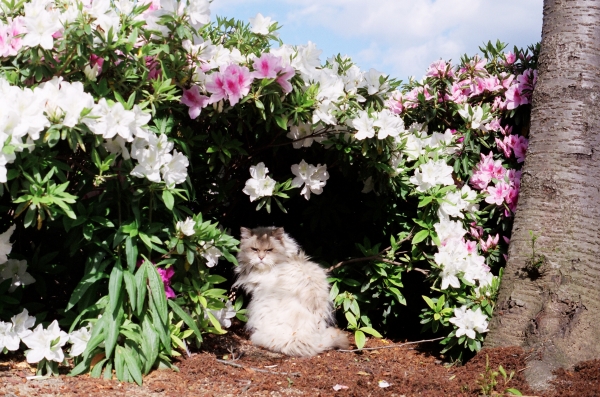 JUGEMテーマ:猫色々 家から車で数分の所に、山の公園があります。 以前はここにたくさん野良猫がいたんですが、最近は全く見ません。 きっと餌やりが禁止されたせいだと思います。 これはもう何年も前の写真で、ツツジの植え込みに毛の長い猫が座っていました。 この子はすぐに見なくなりました。野良は出入りが激しいのです。 一匹去れば新しい猫が来るし、一匹来れば去る猫が出てきます。 この子はしばらくいましたね。ていうか似たような色の猫が多いから、はっきり区別がつかないんです。 この子は大人しくて...