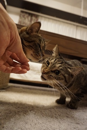 人見知りさんな 花ちゃんは猫草が大好物。 私の手の中にある草を見つけると 腰が引けつつも… ハクハクッ(急げ急げ〜) 慌てて召し上がります。 花ちゃん、安心してくださいな。 無理やり撫でたりしませんから〜^^ むー、ほ、本当ですか? そんなぁ〜 この3年、一度たりともしたことないじゃな〜い 言われてみれば、そうかもしれない。 でしょ?でしょ?(ホッ) こちらは、マイペースな次女の雪ちゃん ...