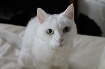 白い猫さん チーちゃん またの名は“ファルコン チーちゃん” 青いお空にかかる一筋の雲は、チーちゃんみたい。 チーちゃんにまた会えるかな。会えますように。 ありがとうございました。 やまだ記 :キャットシッター