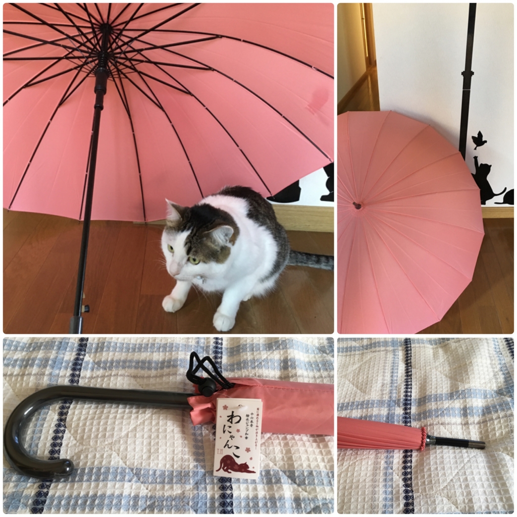 JUGEMテーマ:猫雑貨 見た目はカワイイピンクのチェリー柄の傘、しかし柄が錆びついている。 そんな傘を2年ほど使っていました。 自分一人が入る傘なら十分と思っていたのですが、冬に買ったピンクのコートに錆が付いてしまって、傘を新調することに決めました。 新しい傘を買うなら、絶対猫!! と決めていたので、しっかりした丈夫な和傘『わにゃんこ』 55cm 16本骨を送料無料・1698円(税込)で購入しました。 カバー付きです!お店のなかに持ち込むとき...