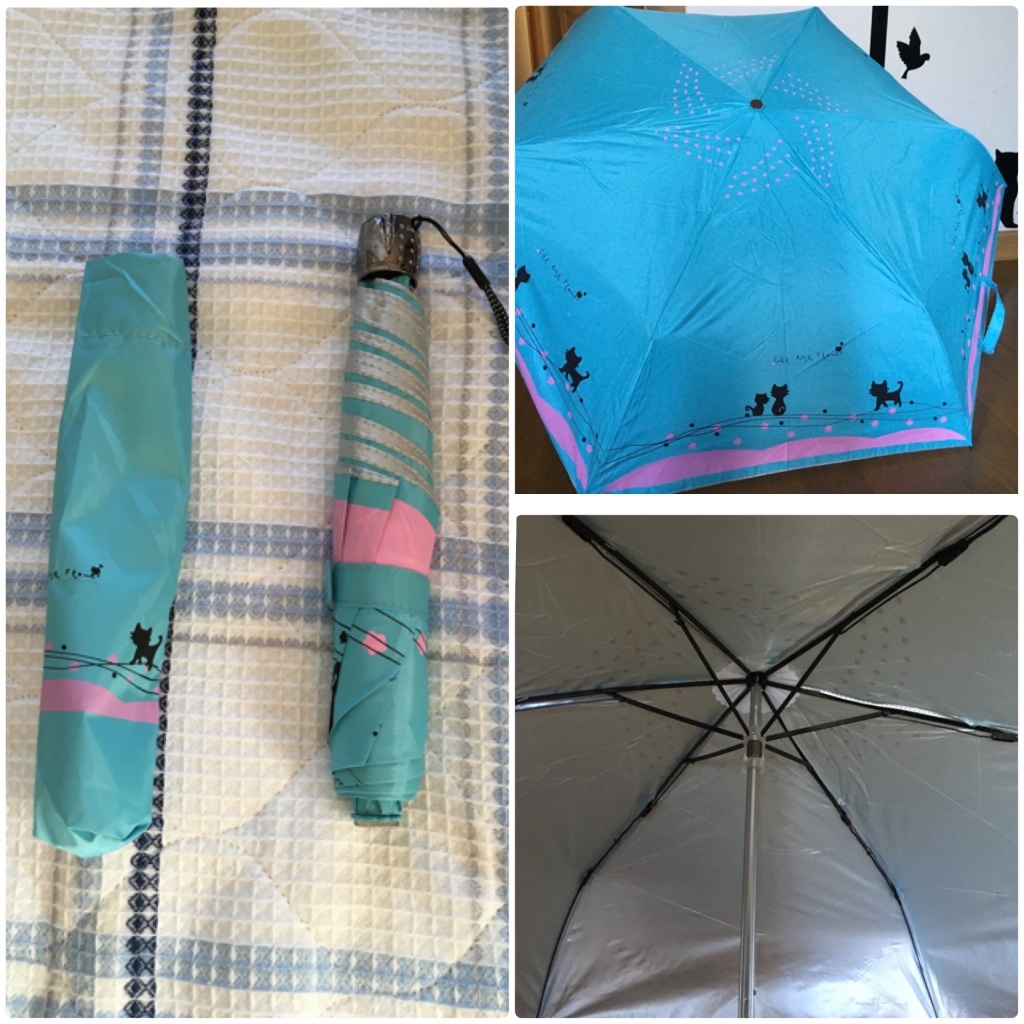 JUGEMテーマ:猫雑貨 晴れの日続きのGWが終わり、本日は朝から雨。 一日中、けっこう降ってます。 こんな日はしっかりした傘を使いますが、お天気崩れるかもという日は折り畳み傘をバッグに忍ばせています。 商品名:【折りたたみ傘/晴雨兼用/猫柄】UVカット 折り畳み傘 購入店舗:Mercury Eight マーキュリーエイト 内側の色はシルバーで、UVカットも遮光度も99% なんてったってお散歩猫のデザインがかわいい!!  ...