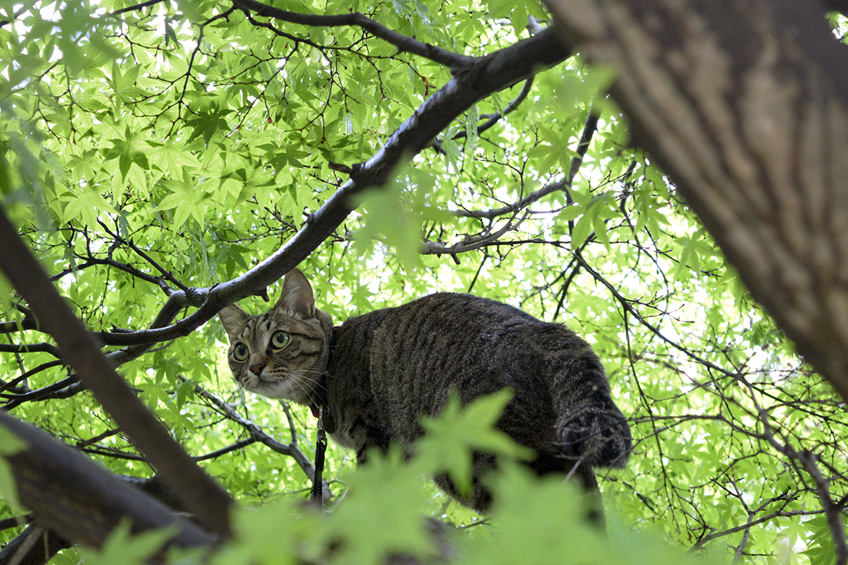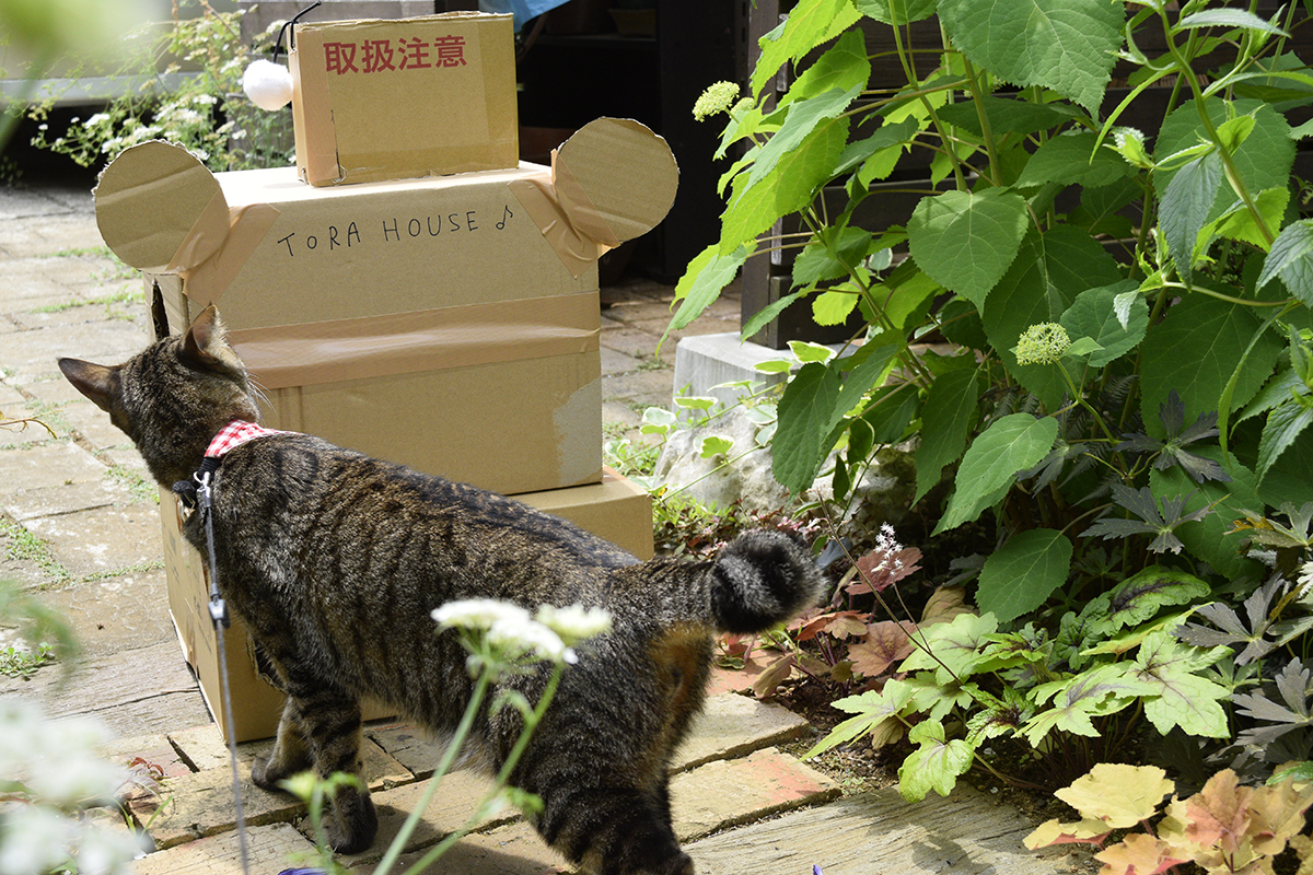今日も朝からお散歩。 鳥さんたくさん♪ 木陰でトレーニング。 涼しくて座り込んだら動きたくなくなりました。 お家にもどったら虎のお昼寝用段ボールを人間が2階建てにバージョンアップしてくれました。 2階から1階に手を入れられます♪ ますますお気に入りの場所になりました。 でもお外も好きなので夕方にもお散歩です♪ JUGEMテーマ:キジトラの...
